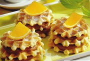 Orange heiß waschen, trocknen und von einer Hälfte die Schale abreiben. Orange halbieren, von der nicht abgeriebenen Hälfte eine Scheibe abschneiden und anschließend in 8 Segmente teilen. Orangenhälften auspressen. Den Topfen mit Orangenschale und -saft, Ingwer und Nutella glattrühren. Für die Waffeltürmchen jeweils einen Teelöffel Creme auf eine Waffel geben, mit einer zweiten abdecken, nochmals eine Teelöffel Creme darauf verteilen und eine dritte Waffel als Deckel obenauf setzen. Die Waffeltürmchen mit Staubzucker bestäuben und mit jeweils einem Orangensegment und Melisse oder Minze garniert servieren.