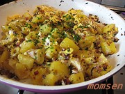 Gehackte Zwiebel mit Schmalz goldgelb anrösten, würfelig geschnittenes Geselchtes dazugeben, kurz rösten, dann gekochte, würfelig geschnittene Kartoffeln dazugeben und knusprig rösten. Zum Schluss die versprudelten Eier dazugeben und unter Rühren stocken lassen. Beliebig salzen, pfeffern (mit Oregano bekommt das Gericht einen italienischen Hauch) Für Knoblauchfans schmeckt die Eierspeise auch mit dieser Zutat hervorragend